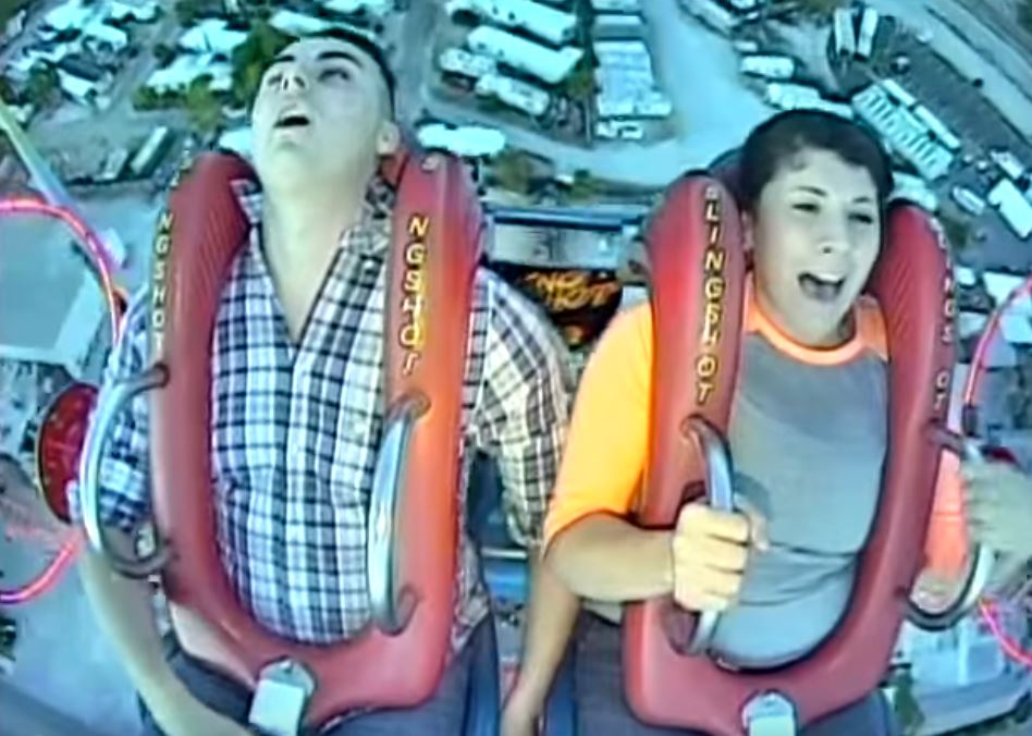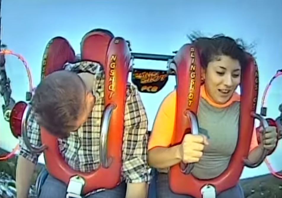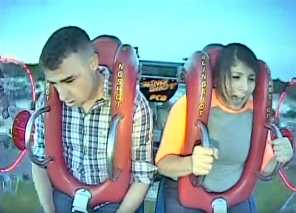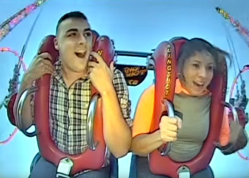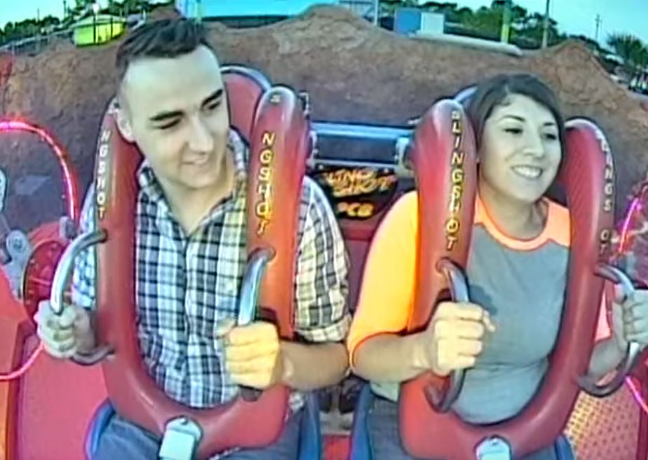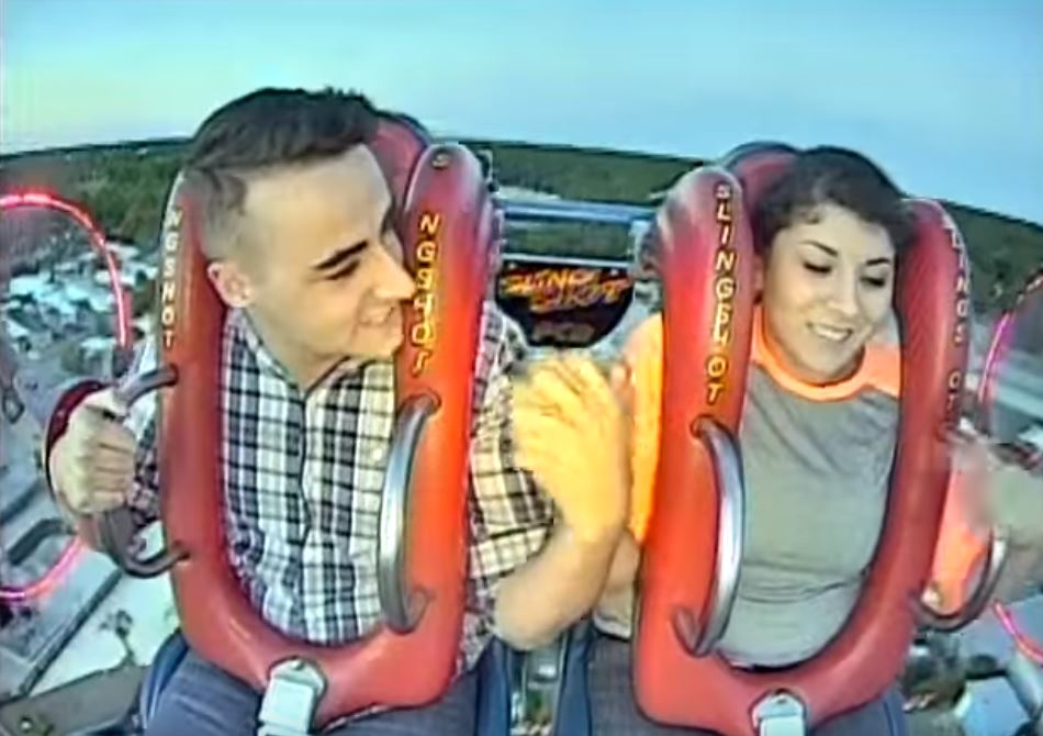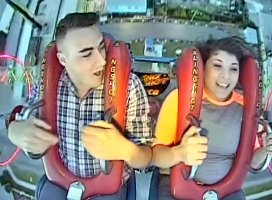 Nah kali ini ada cerita menarik dari pasangan yang menaiki ketapel raksaksa. Terlihat di awal bahwa muka mereka berdua begitu bahagia tapi juga deg-degan.